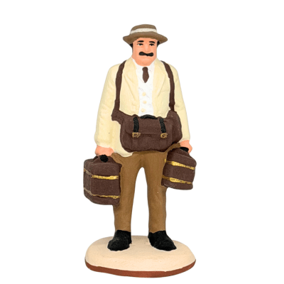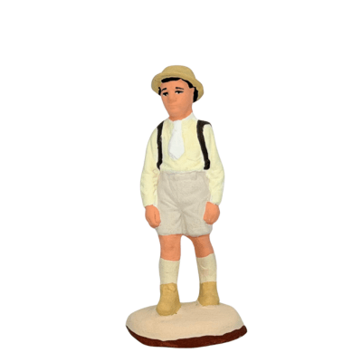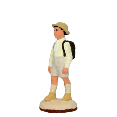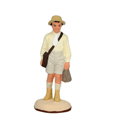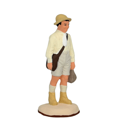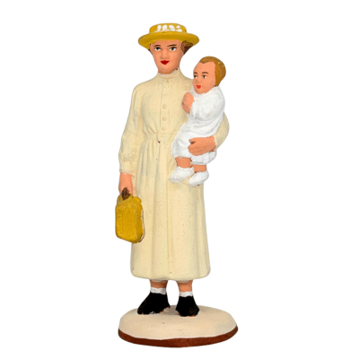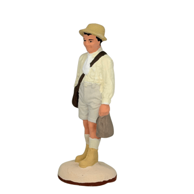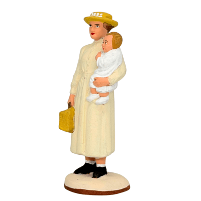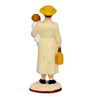 Contenu de la scène : un décor avec deux arbres et un socle, un château et ses deux annexes, deux statuettes de lion (aux abords du château), Joseph et Augustine portant le bébé Germaine, Marcel et Paul.